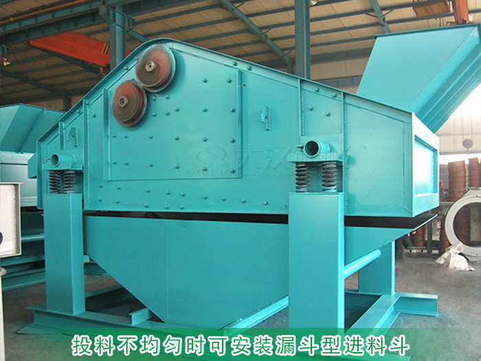 砂巖礦用振動篩一般篩分產(chǎn)量比較大,進料時投料量也會很大,所以很容易造成篩面物料堆積,影響過網(wǎng)率,出現(xiàn)篩網(wǎng)堵塞的情況,所以在進料時需要均勻進料,不要一次性投入過多物料??稍谶M料口上蓋上加裝一個漏斗型的進料斗,使砂巖勻速進料避免堆積。