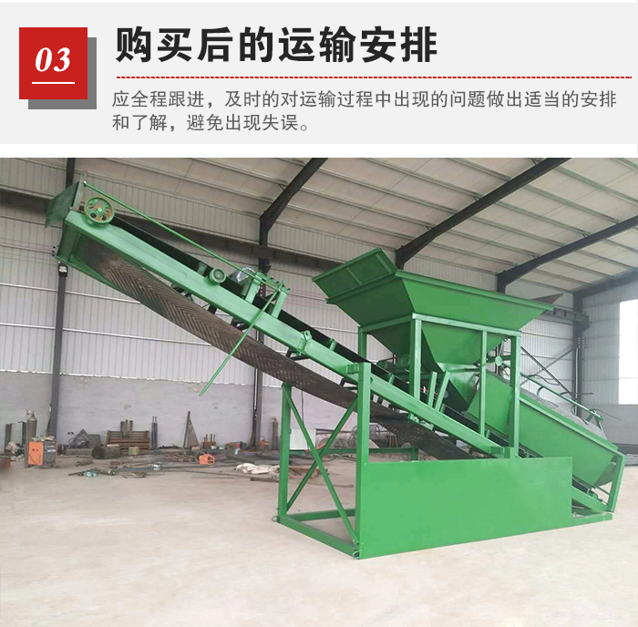 篩沙機(jī)在采購?fù)戤吅?,廠家會(huì)在設(shè)備完成后進(jìn)行運(yùn)輸發(fā)貨,此時(shí),用戶應(yīng)全程跟進(jìn),及時(shí)的對運(yùn)輸過程中出現(xiàn)的問題做出適當(dāng)?shù)陌才藕土私猓苊鈴S家出現(xiàn)失誤,出現(xiàn)小配件漏發(fā)等問題。