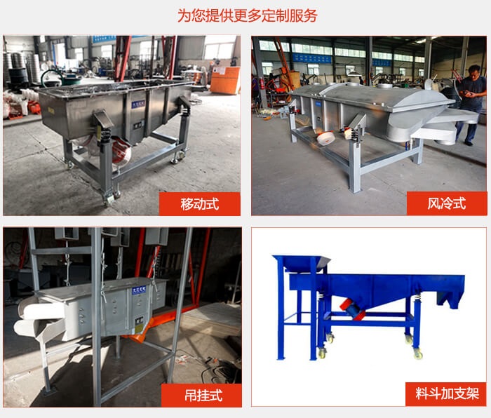 直線篩選機可根據(jù)要求采用不同的設(shè)計,如篩機的總高度、進料口角度/尺寸、出料口角度/尺寸/加閥、設(shè)備表面處理可選擇拋光或噴砂、普通電機/防爆電機等。不同設(shè)計,價格不同。