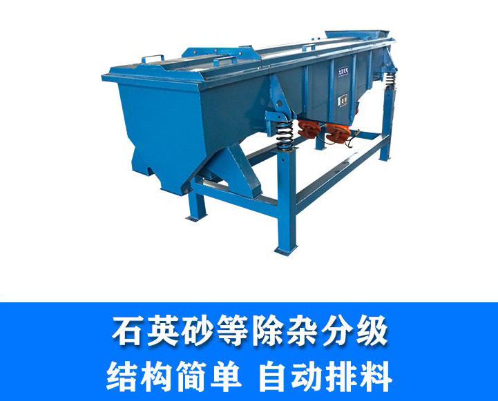 石英砂直線篩主要用于石英砂的初篩和分級(jí),粒度范圍為1—0.5mm、0.5—0.1mm、0.1—0.01mm、0.01—0.005mm。