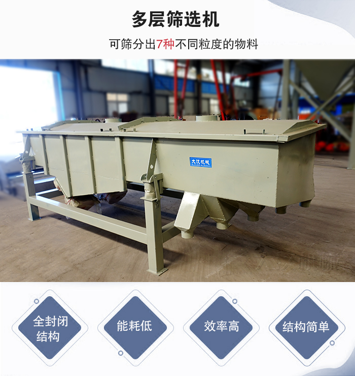具有能耗低、效率高、結(jié)構簡單、易維修、全封閉結(jié)構無粉塵溢散的特點。最高篩分目數(shù) 400目,可篩分出7種不同粒度的物料。