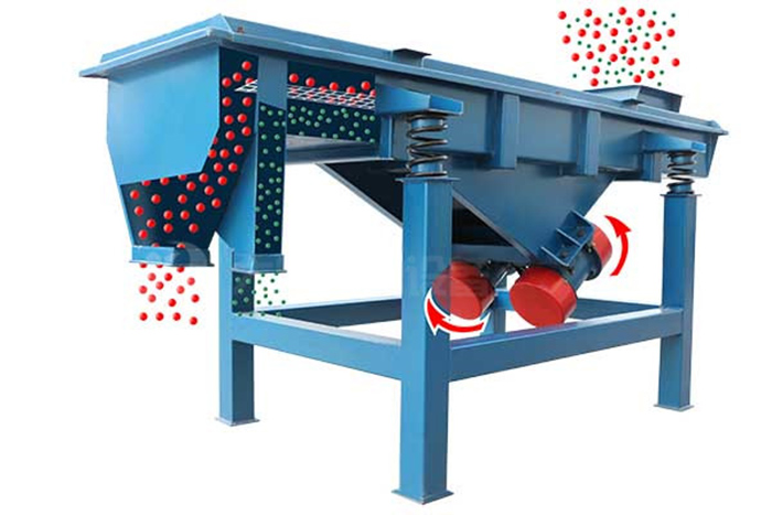 直線型振動篩兩電機軸相對篩面有一傾角,在激振力和物料自重力的合力作用下,物料在篩面上被拋起跳躍式向前作直線運動,從而 達到對物料進行篩選和分級的目的。可用于流水線中實現(xiàn)自動化作業(yè)。