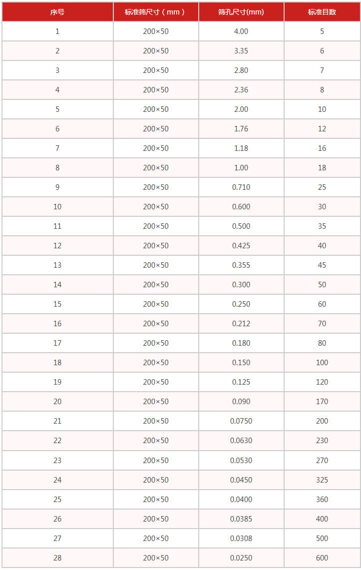 0.025-4篩孔尺寸mm