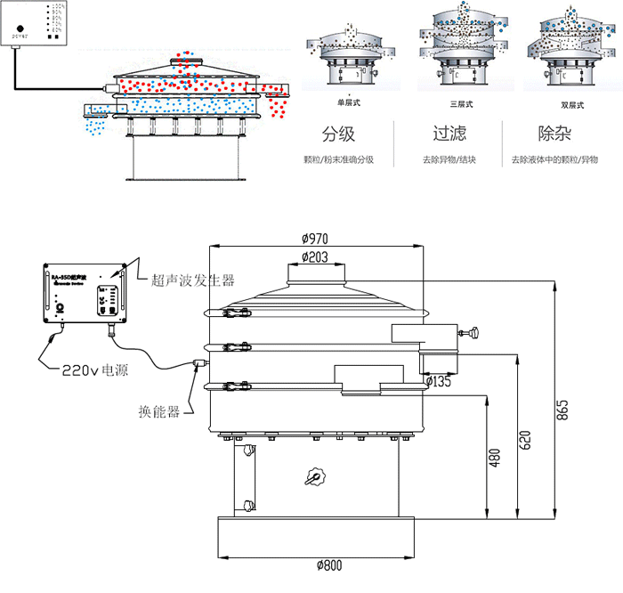 超聲波振動(dòng)篩工作原理: