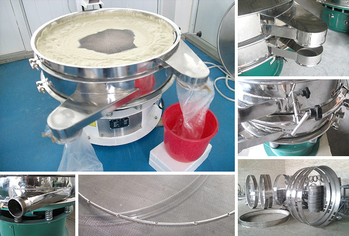 整機(jī)采用304不銹鋼材質(zhì)。經(jīng)過人工內(nèi)外打磨光滑整潔,無黑點(diǎn)、無毛刺,振動篩密封件配備衛(wèi)生標(biāo)準(zhǔn)。