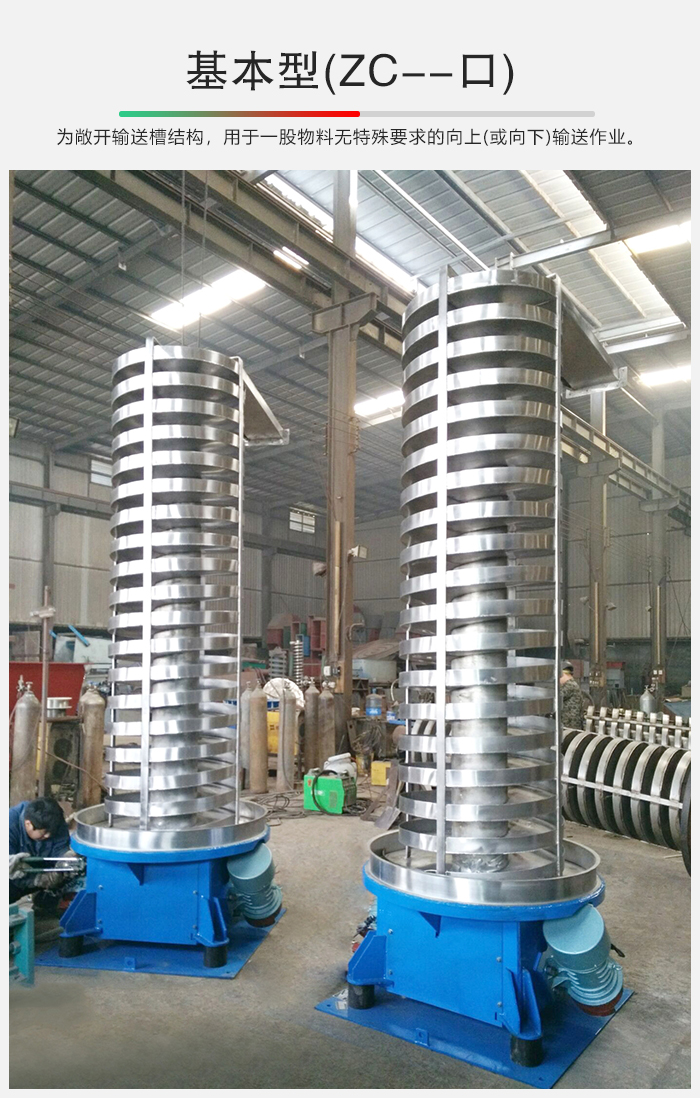 1.基本型(ZC--口),為敞開(kāi)輸送槽結(jié)構(gòu),用于一股物料無(wú)特殊要求的向上(或向下)輸送作業(yè)。